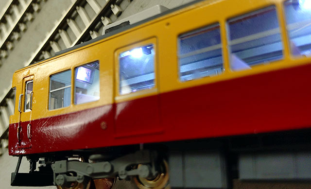 京阪3000系。室内灯はもとより、室内のテレビも点灯してテレビカーの面目躍如。ペーパーによるフルスクラッチ。ゲストの方の作品です。