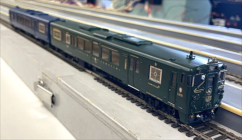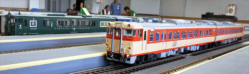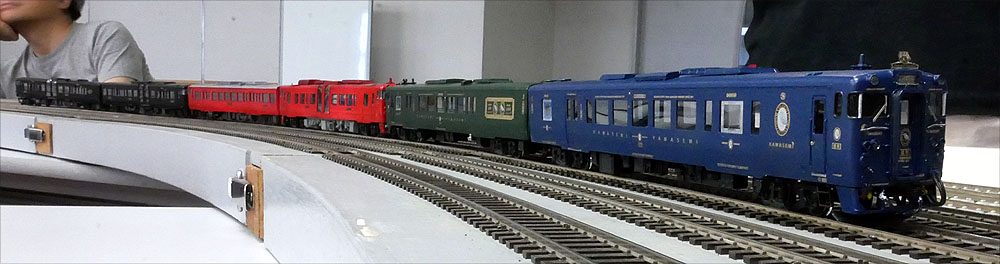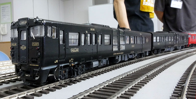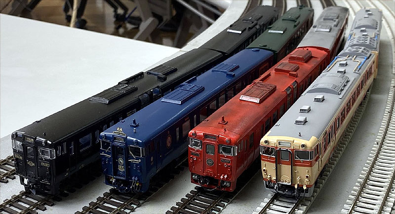 JR九州のD&S列車が集結。左から”はやとの風””かわせみやませみ””いさぶろうしんぺい”国鉄のキハ6667。すべてゲストの方の作品です。(撮影:ゲストのO氏)