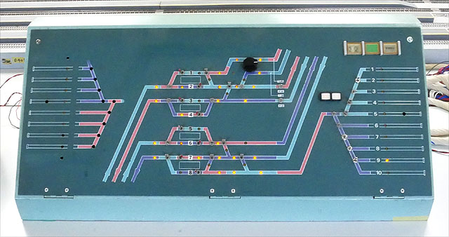操作パネル。信号所の転轍機操作盤のような感じ。