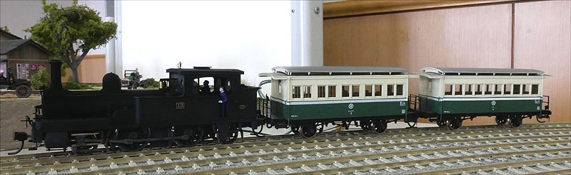 600形(A8)。珊瑚のキット加工、大分交通耶馬渓線のイメージ。客車は宇佐参宮線のもの。(ムサシノモデルの完成品)。